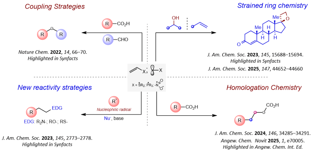 Key advances from our group include coupling strategies applicable to complex molecular fragments, a solution to circumvent polarity mismatching in radical chemistry, innovative methods for accessing saturated strained heterocycles from abundant feedstocks, and practical homologation strategies for precise carbon-chain editing in complex molecules.